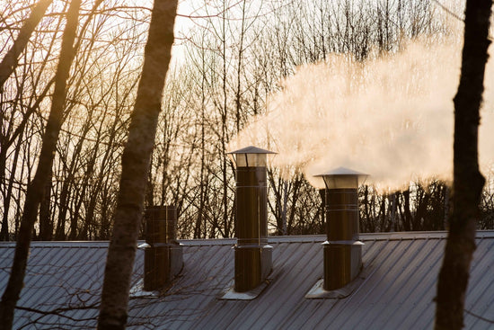 We use three stacks coming out of the sugar house. One is for smoke from the burner, next is the steam from the evaporator, and another for the steam from our finishing pan.
